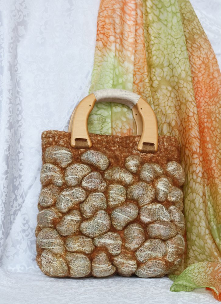 Geanta din lana impaslita, unicat, handmade, Nisipul Marii