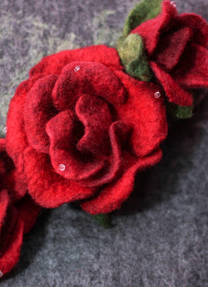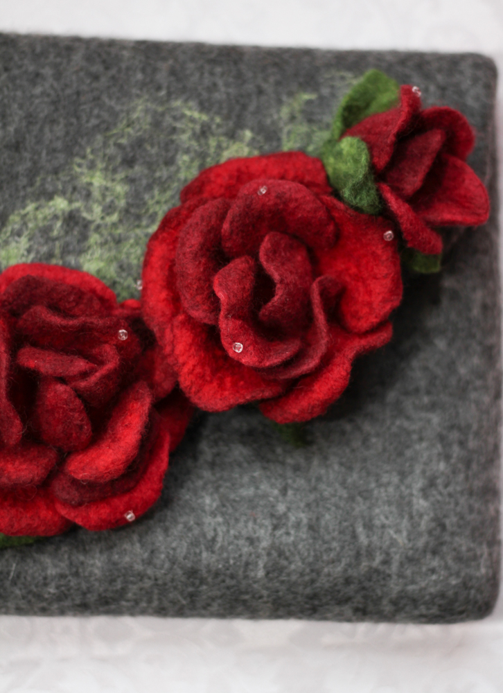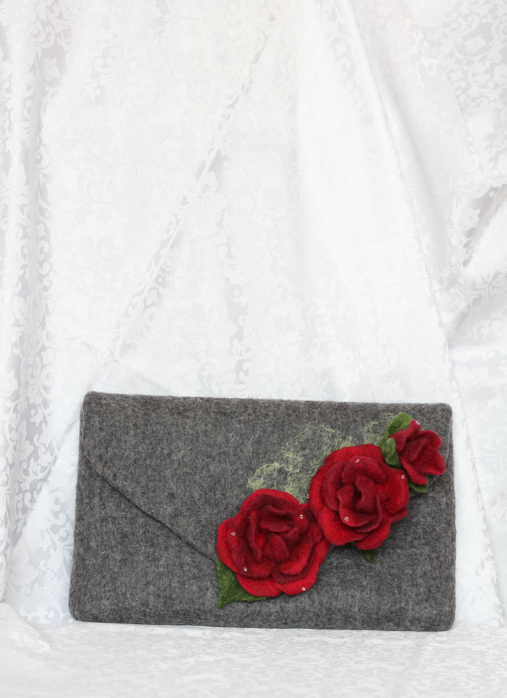 Geanta plic din lana impaslita, unicat, handmade, Trandafirii