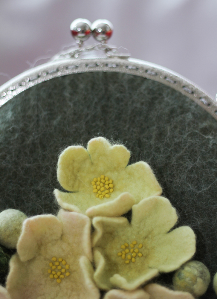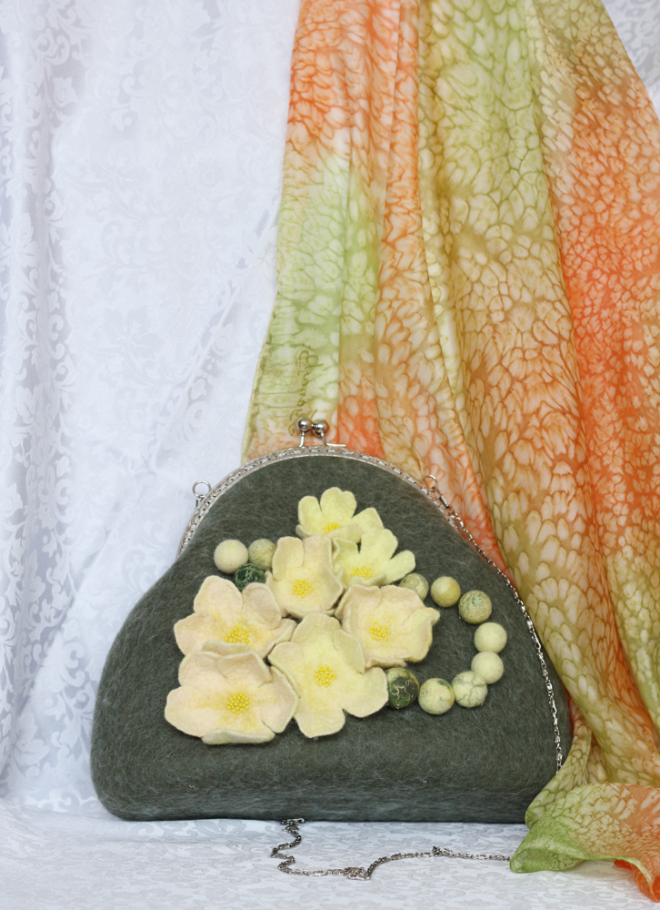 Geanta din lana impslita manual,handmade, unicat, Flori de Mar
