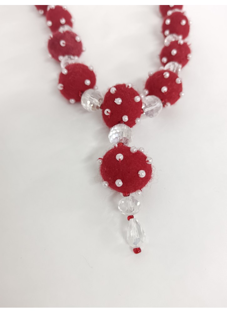 Colier margele lana impaslita, unicat, handmade, Rosu