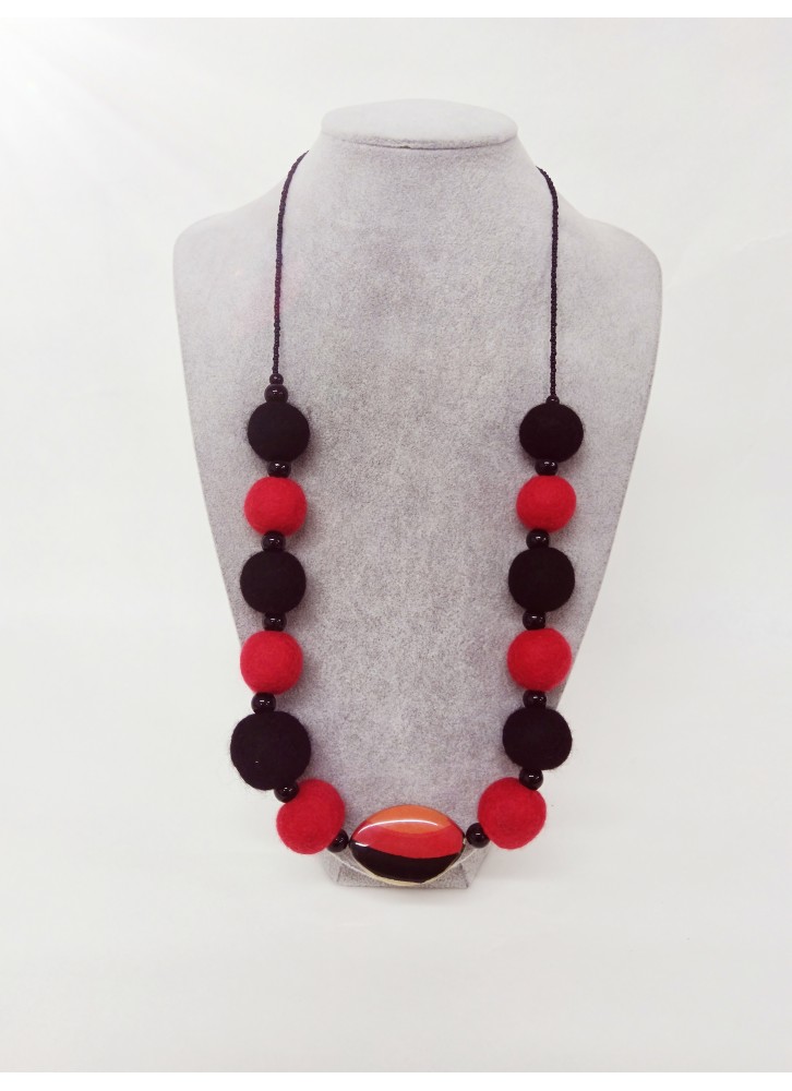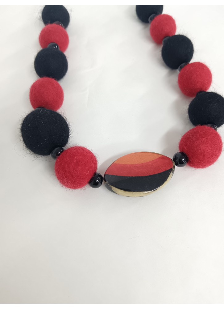 Colier margele lana impaslita, unicat, handmade, Negru - Rosu