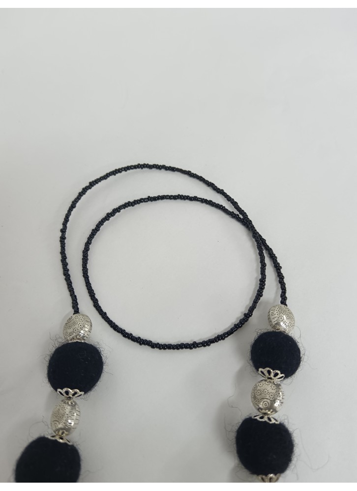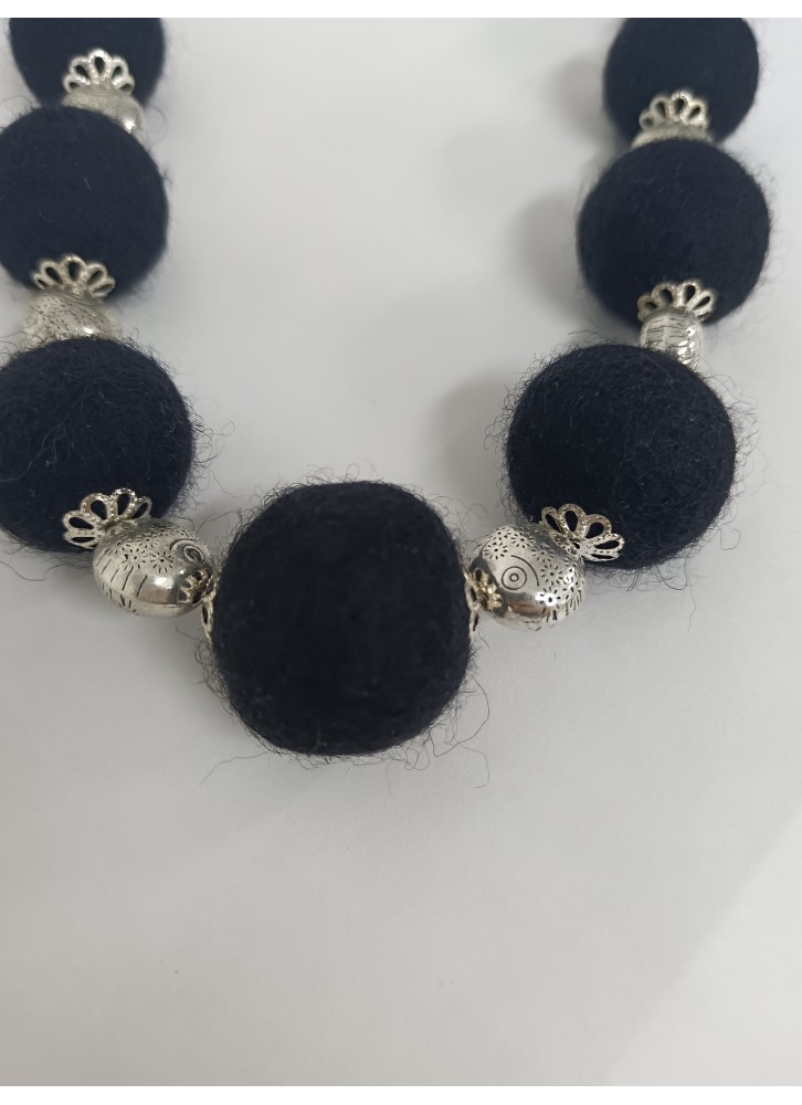 Colier margele lana impaslita, unicat, handmade, Negru